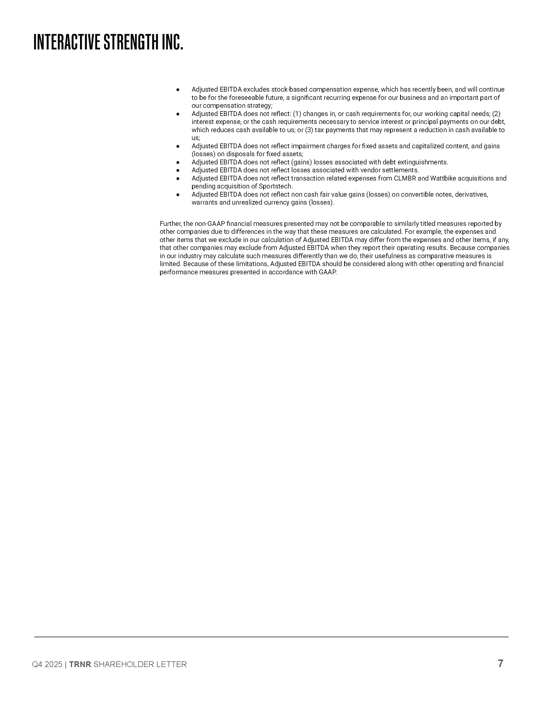 You are about to review presentations, reports and/or filings of Interactive Strength, Inc., that contain time-sensitive information. The information contained therein is only accurate as of the date thereof. Interactive Strength, Inc. d/b/a FORME will not be reviewing or updating the material that is contained in these items after the date thereof. The information contained therein may be updated, amended, supplemented or otherwise altered by subsequent presentations, reports and/or filings by Interactive Strength, Inc. d/b/a FORME.